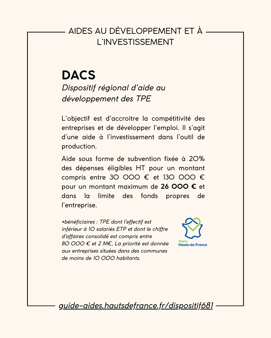 Pour plus d'infos, rendez-vous sur le site de la Région : https://entreprises.hautsdefrance.fr/aides-et-dispositifs
