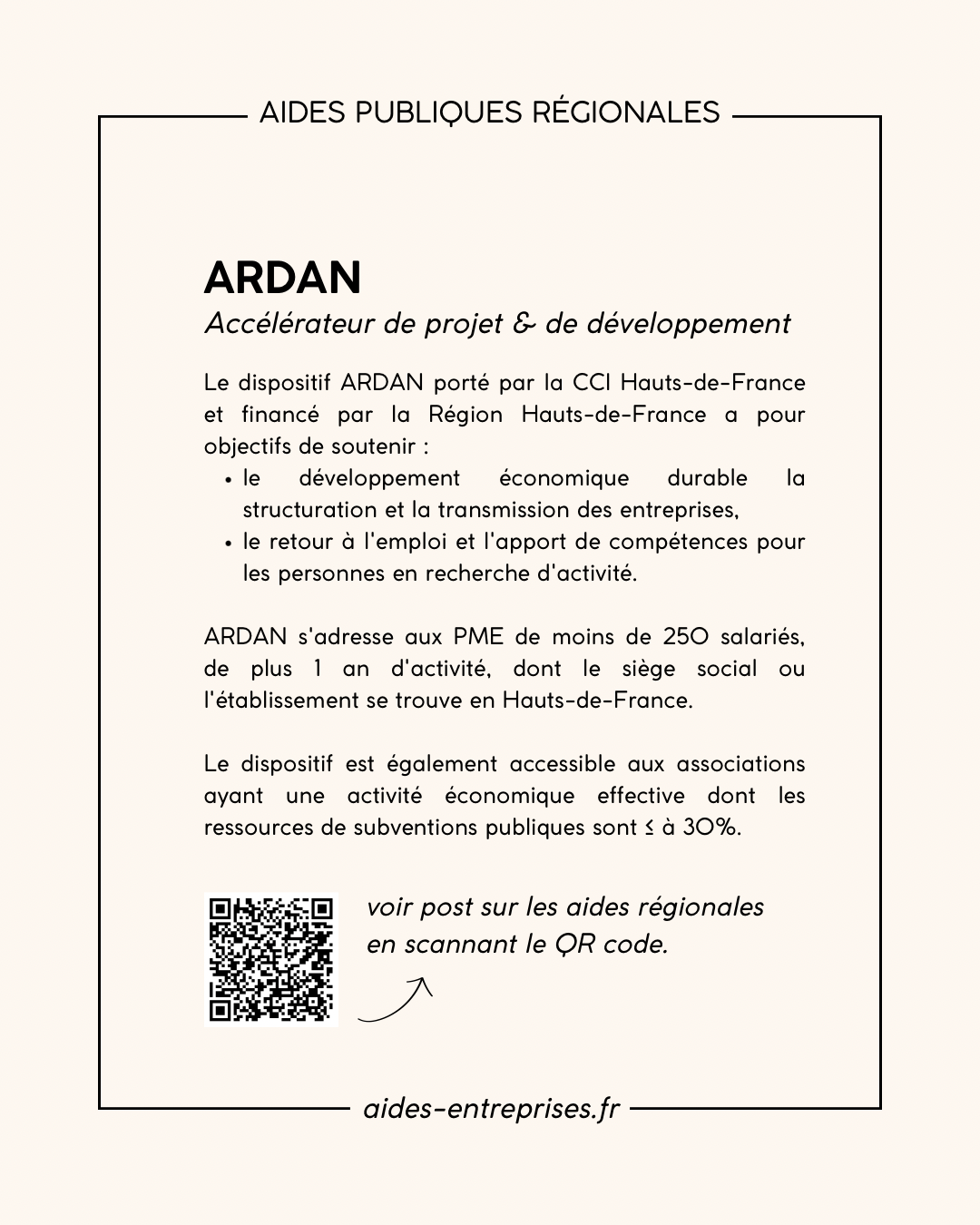 La Région Hauts-de-France et les acteurs du territoire proposent des solutions de financement, d'accompagnement et de soutien adaptées à votre projet.