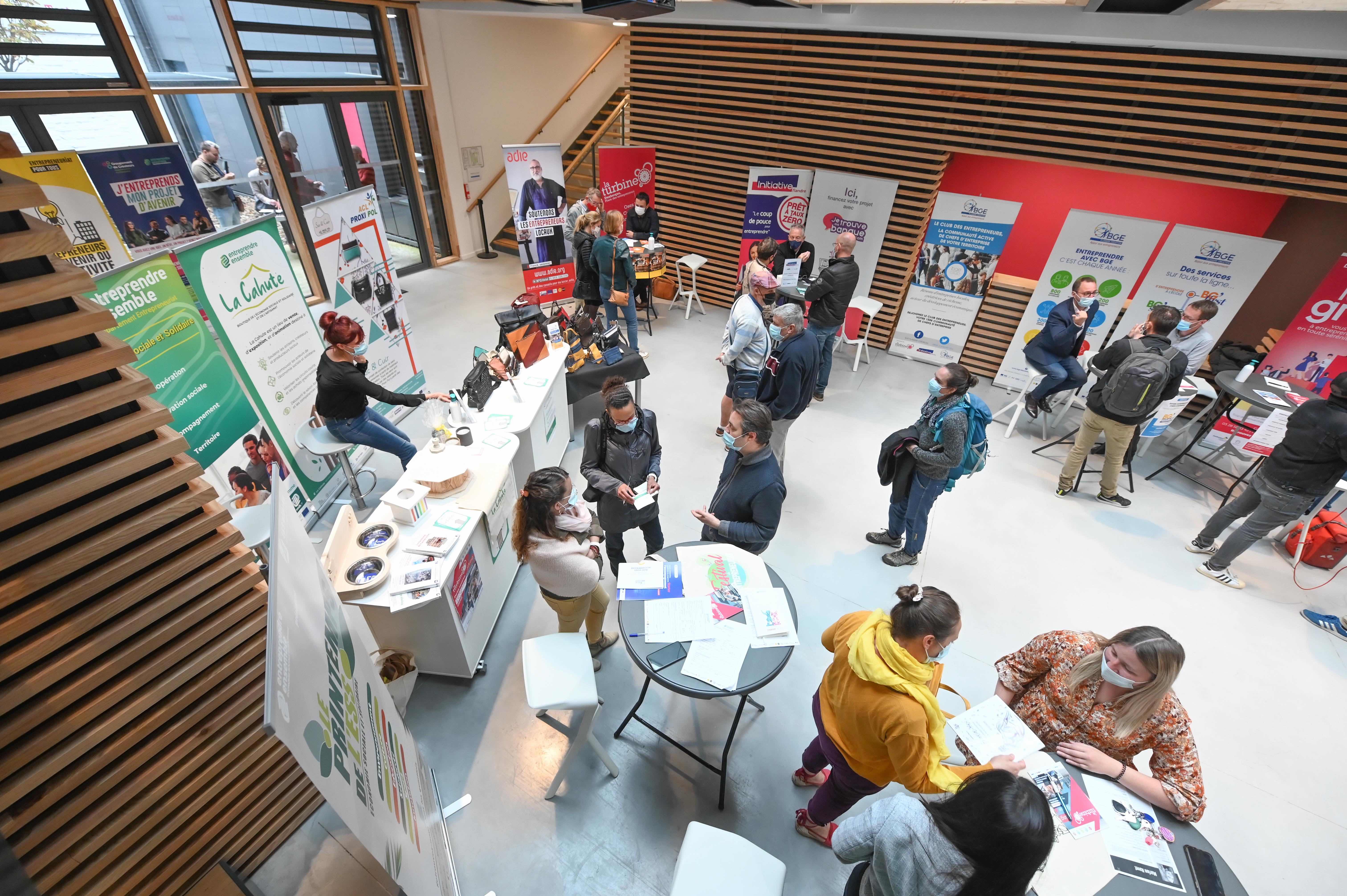 L'ensemble de ses partenaires (BGE Flandre Création, Initiative Flandre, la CCI Littoral-Hauts-de-France, la Chambre de Métiers et de l'Artisanat des Hauts-de-France, l'ADIE et le département entrepreneuriat d'Entreprendre Ensemble) mais aussi le Groop (coopérative d'emploi et d'activité du Dunkerquois) étaient présents pour accueillir, informer et orienter toutes les personnes qui réfléchissent à un projet de création ou de reprise d'entreprise plus ou moins avancé. Elles étaient plus de 300, issues de tout le territoire, dont des collégiens et des lycéens, déjà sensibilisés à l'entrepreneuriat. Toutes ont pu s'entretenir avec des artisans entrepreneurs et de jeunes créateurs d'entreprise dont certains venus du secteur de l'ESS (Economie Sociale et Solidaire) en pleine expansion dans le Dunkerquois. Et découvrir la possibilité qu'offre la Turbine aux porteurs de projets de trouver en un même lieu des solutions de financement, d'accompagnement ou encore de locaux.