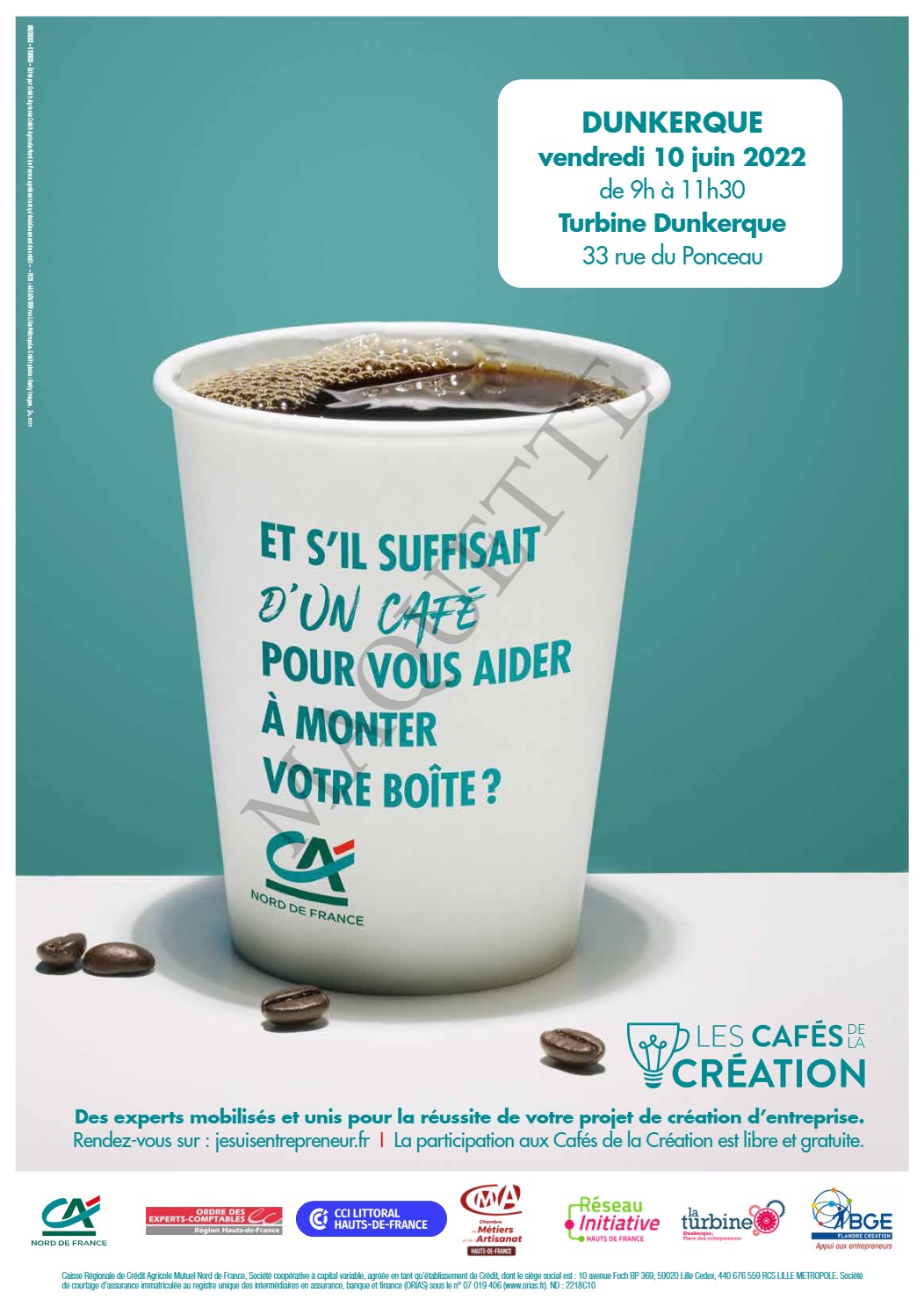 Le Crédit Agricole organise l'événement " les Cafés de la Création" à la Turbine Dunkerque, un événement convivial et une occasion pour échanger, poser des questions aux différents partenaires de la création d'entreprises.