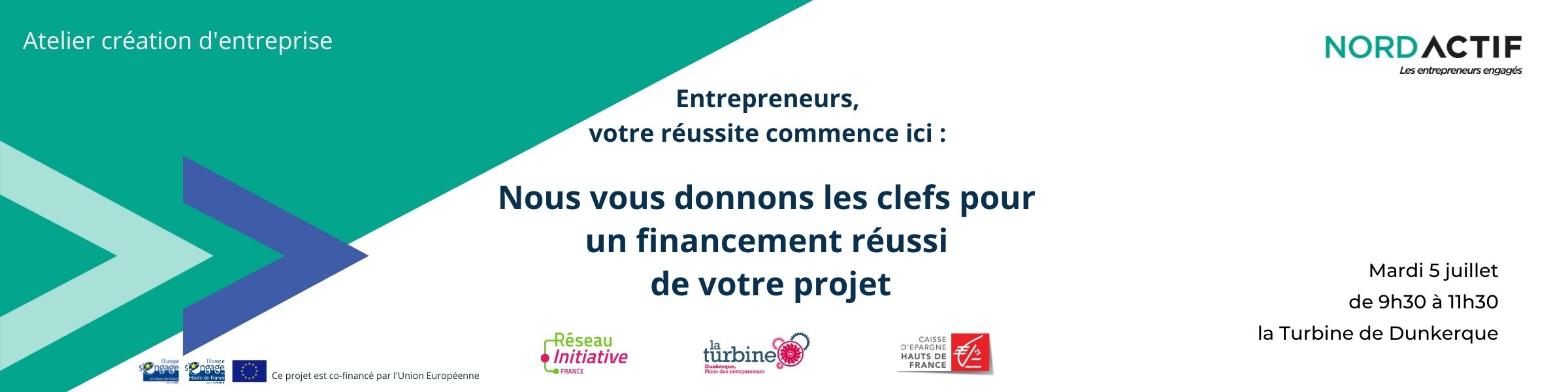 L'association Nord Actif organise un atelier de financement destiné à tout le public, avec la participation d'Initiative Flandre et la Caisse d'Epargne Hauts-de-France.