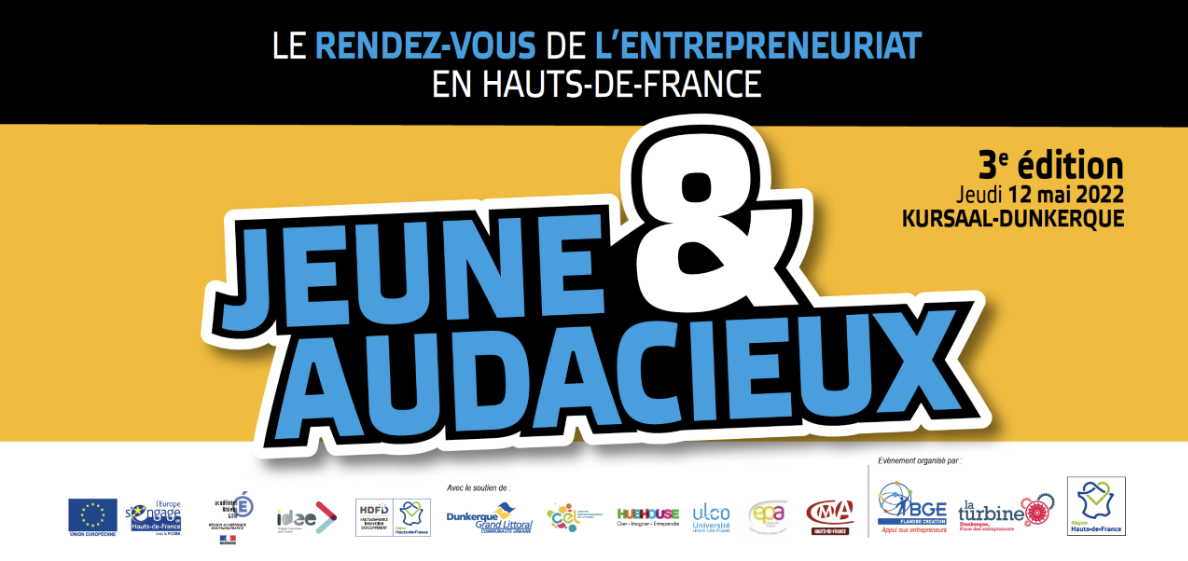Les partenaires de La Turbine organisent le jeudi 12 mai 2022 à la Kurssal Dunkerque la 3 ème édition d'un grand rendez-vous entrepreneurial « Jeune & Audacieux »